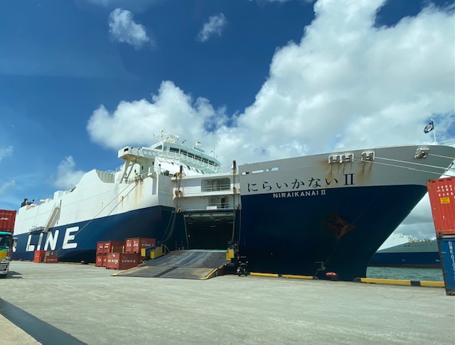 積み込みしたトラックを那覇港へ!