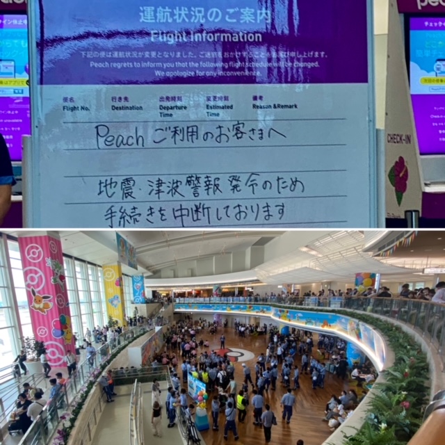 3日の朝 津波警報発令中の 那覇空港